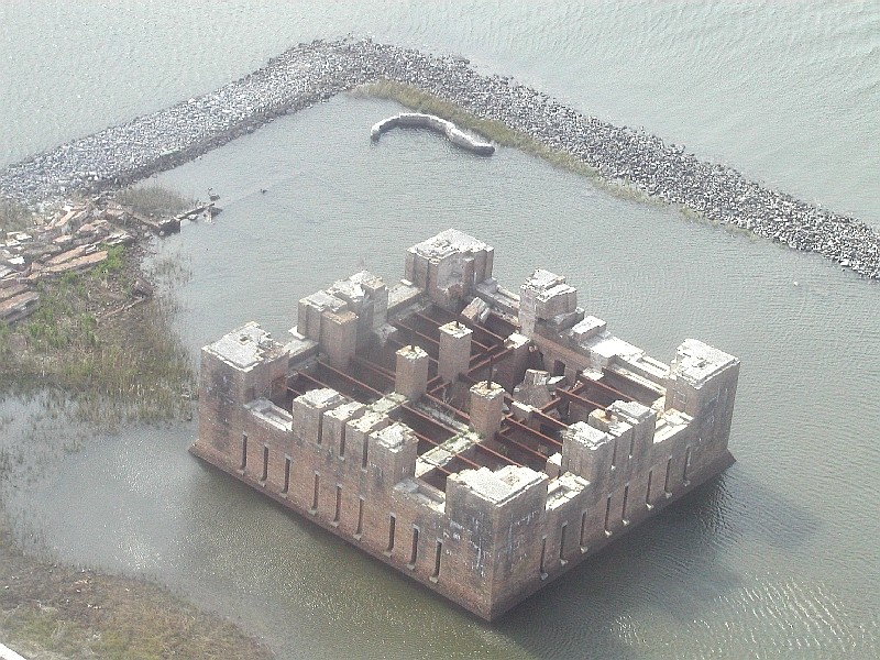 | Fort Proctor (Beauregard) (I believe that is Shell Beach in the upper right of the photo and Old Shell Beach immediately behind the fort.) It is north of Shell Beach on Lake Borgne ( 1850-1874). The fort was never completed because of hurricane damage and the start of the Civil War. It is just west of the mouth of Bayou Yscloskey. It is one of a kind from that era because they used structural iron to help with the support of the walls. The fort was built on land to guard one of the west approaches to New Orleans but is now completely surrounded by water accessible only by boat. More pictures of Fort Proctor. | ||||||||||||||||||||||||||||||||||||||||||||||||||||||||||||||||||||||||||||||||||||||||||||||||||||||||||||||||||