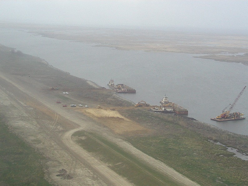 | MRGO - Some of the repairwork being done to bring the MRGO levee up to its pre-Katrina elevation. At this location, clay soils are being offloaded from barges. | ||||||||||||||||||||||||||||||||||||||||||||||||||||||||||||||||||||||||||||||||||||||||||||||||||||||||||||||||||