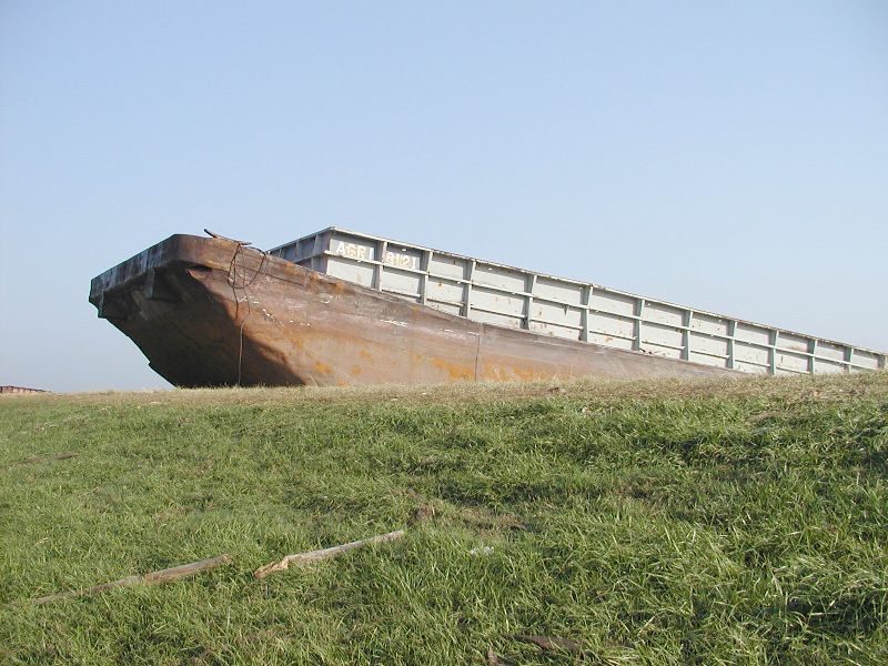 | Some more barges stuck in the batture. It was pretty foggy the morning this picture was taken (9-16-05). |