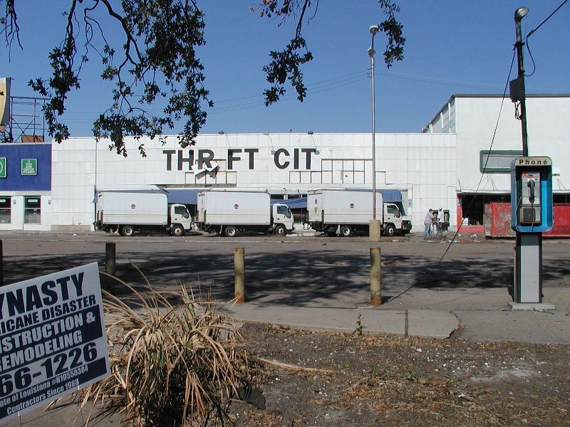 | This next picture is just before Carrolton Ave. and Canal St. Each of those lines is where the water stayed for a time. The water lines are getting more vivid as time goes on. The iron in the lines are rusting more and the black grease in the lines are gathering more dirt, dust, and grime from the air. | ||