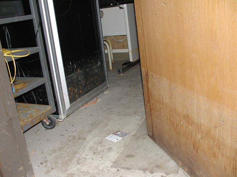 door was 4 feet up and not to worry, that powder is just dead mold. |