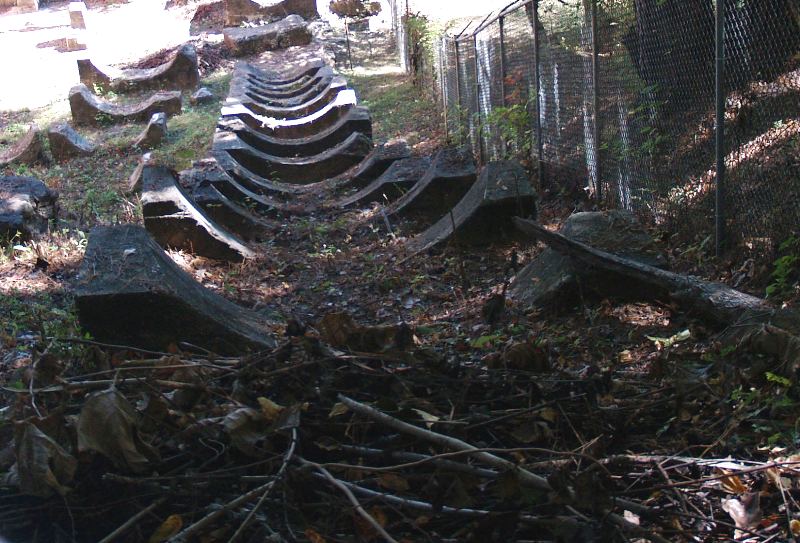 These two pictures look like dinosaur bones. They are really the supports for the water pipes that I suspect went to the turbines that generated power. I like the idea that they are dinosaur bones though. | |||