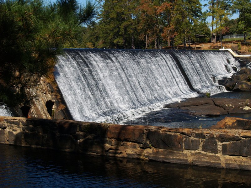 Around 1900, the Towaligia Falls Power Company built a large single dam across the Towaligia Falls. The lake behind the dam is High Falls Lake. In 1905, Georgia Hydro-Electric Company purchased the dam and powerhouse it became a hydroelectric plant. Twenty five years later, ownership was transferred to the Georgia Power Company which later closed the plant. Eventually the power house and surrounding land was donated to the Georgia Fish and Game Commission, which in turn gave it to the State Parks Department. | |||