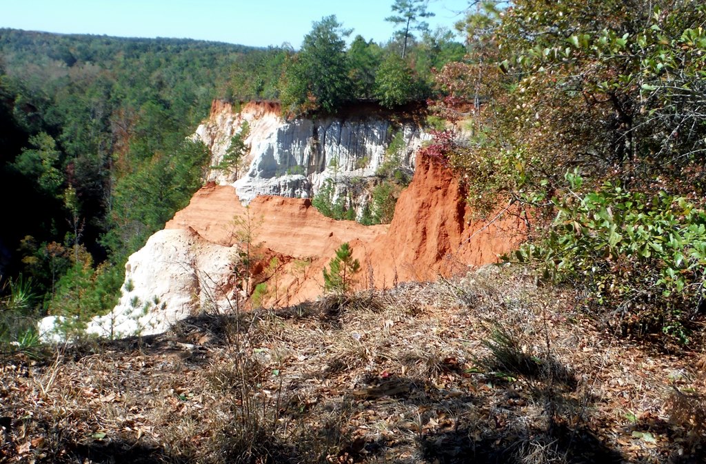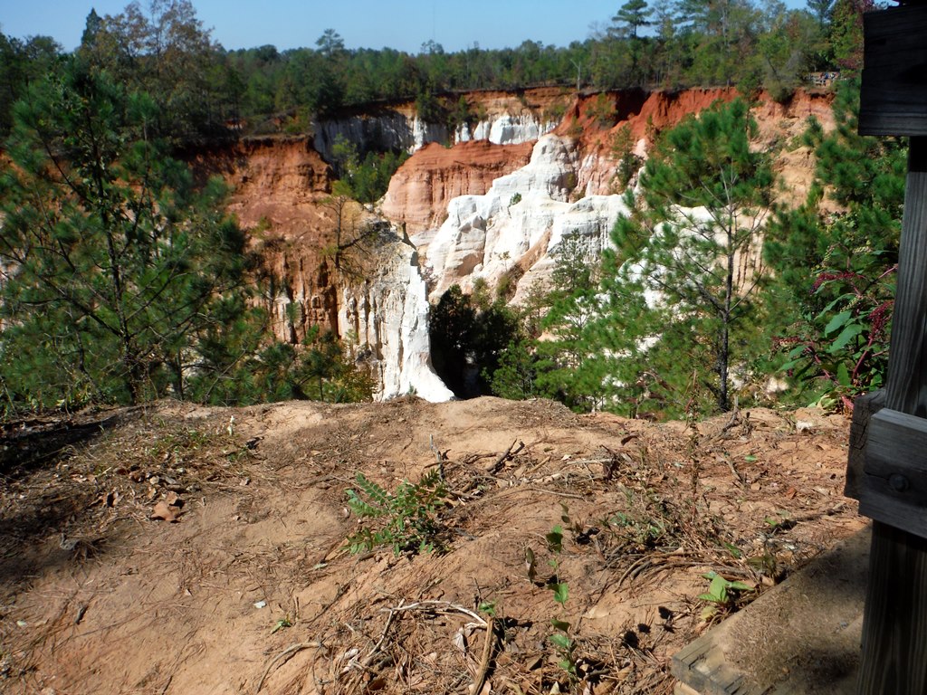 Notice how thin the top soil is and how much it hangs over the edge. The signs above that say to stay behind the fence really mean it! | ||