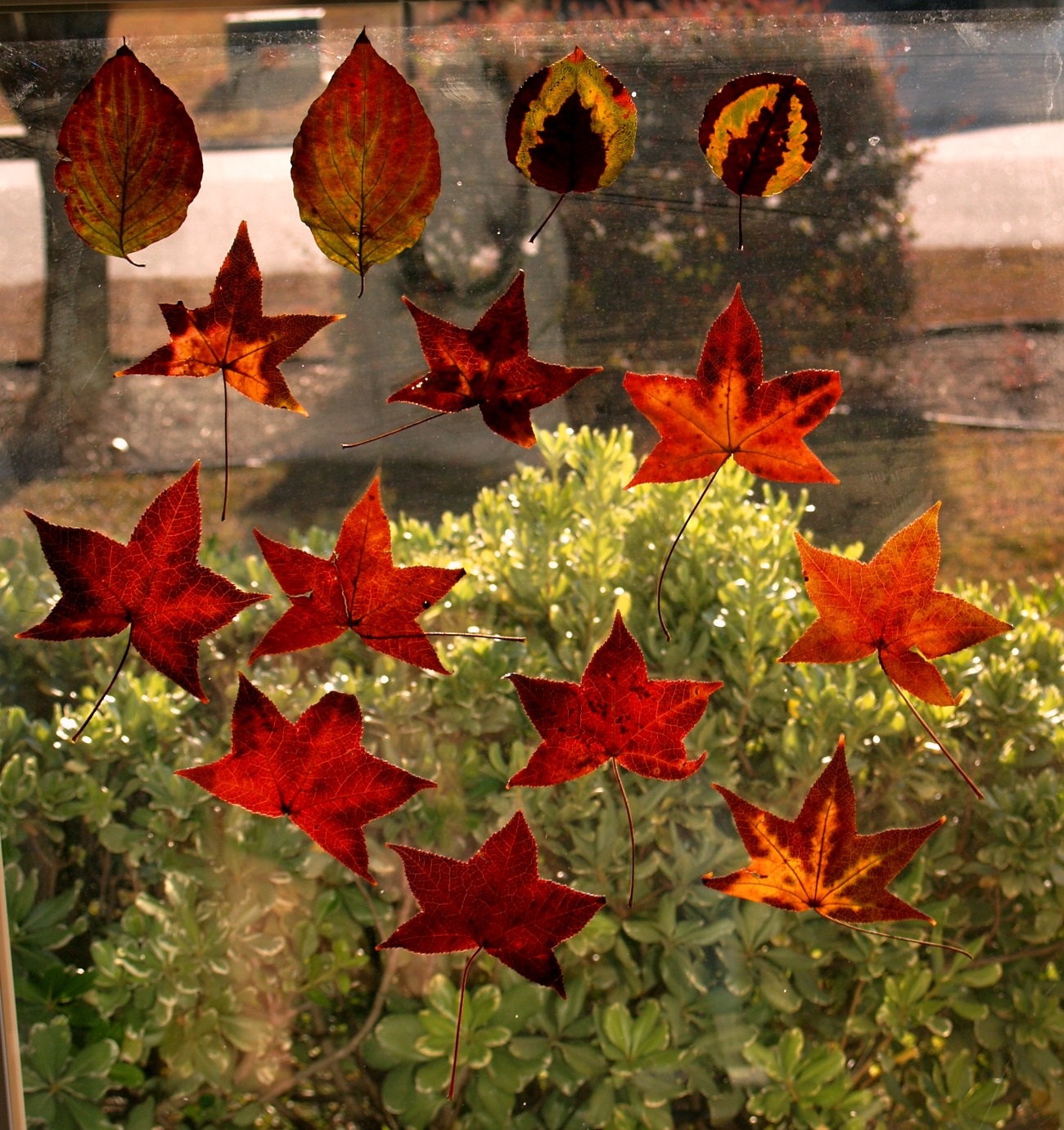 These are all leaves found around town and taped to a window facing South.